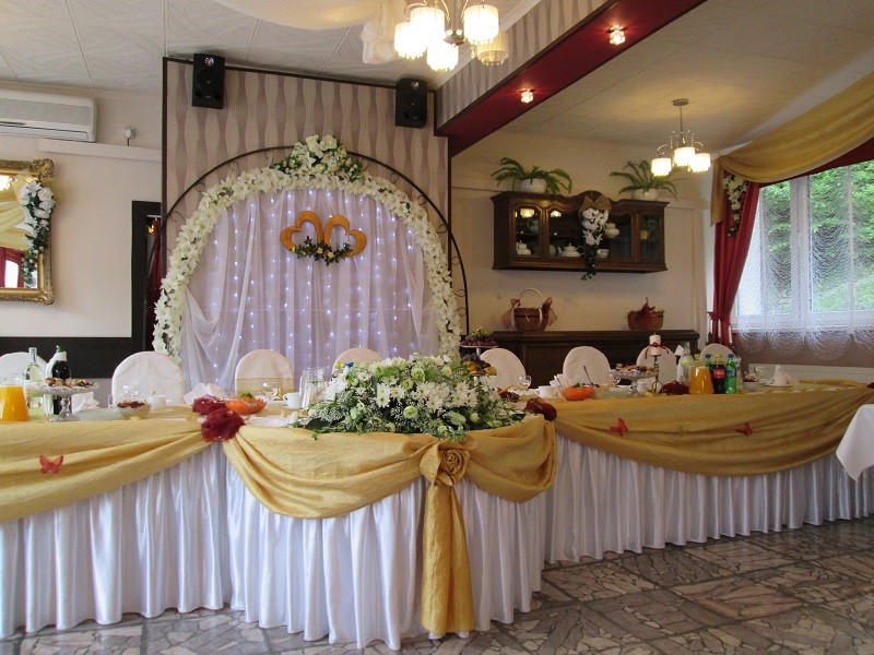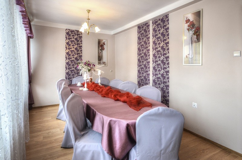 Turime 150 vietų pokylių salę, kurioje patiekiame pusryčius, pietus